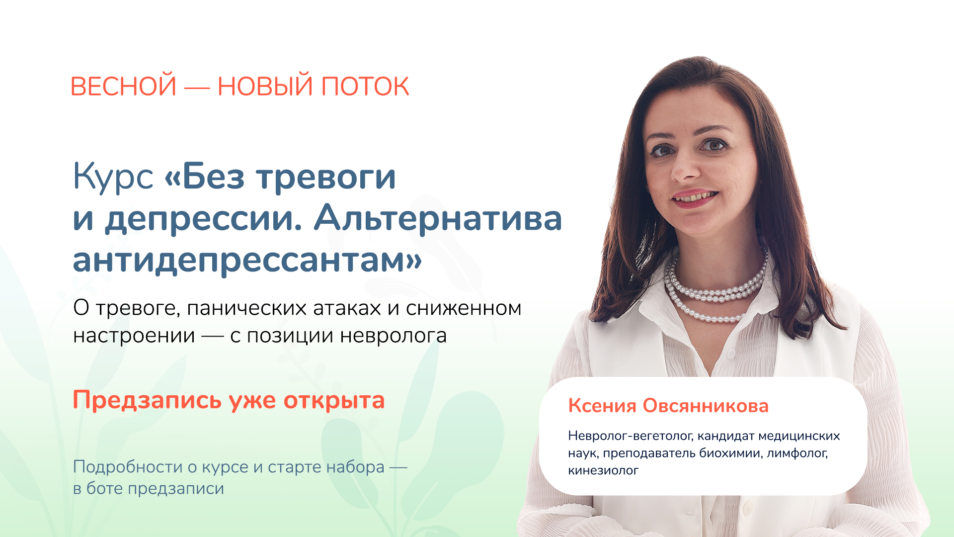 Предзапись на весенний поток курса «Без тревоги и депрессии»